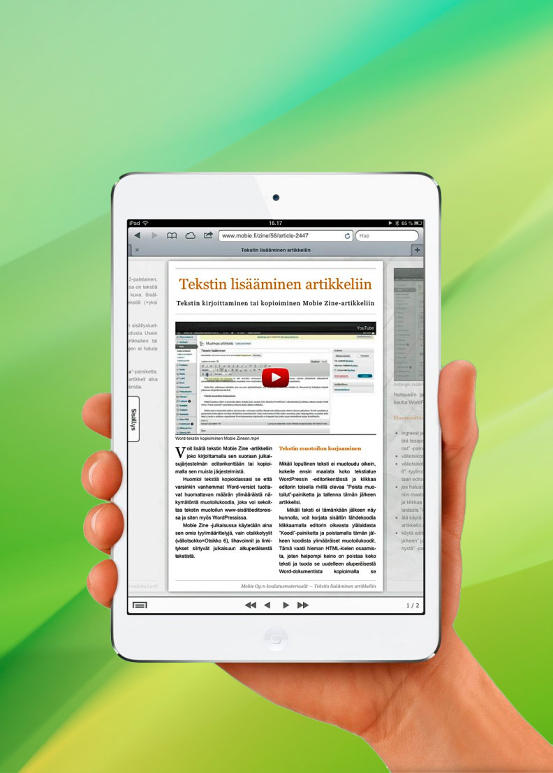 Mobie Zine -käyttöohjeet 1.1.2013